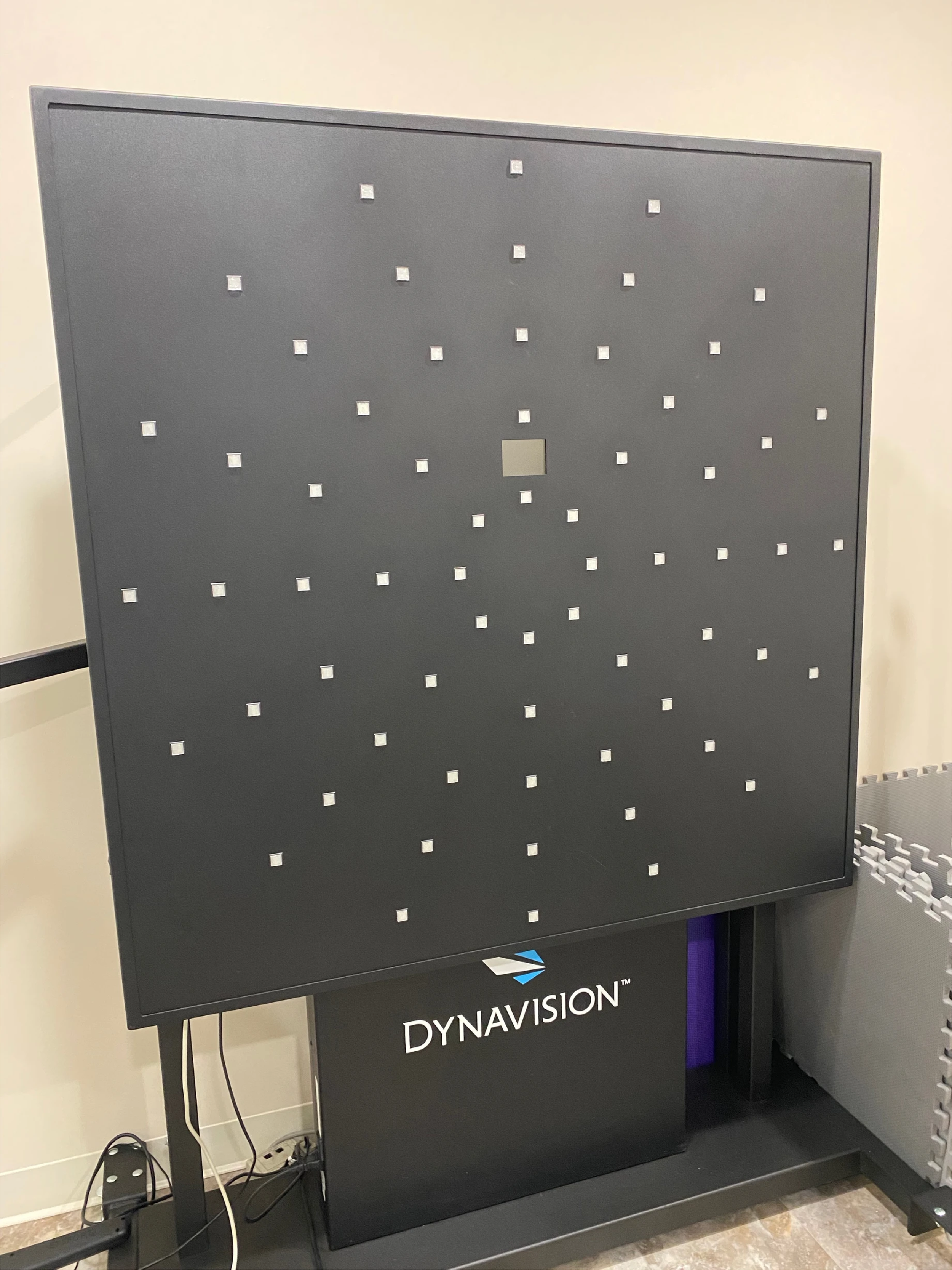 Walking in a straight line in Dr. Blanc’s office, looking at the dot on the wall in front of me while turning my head to the left. Eyes stay on the dot.