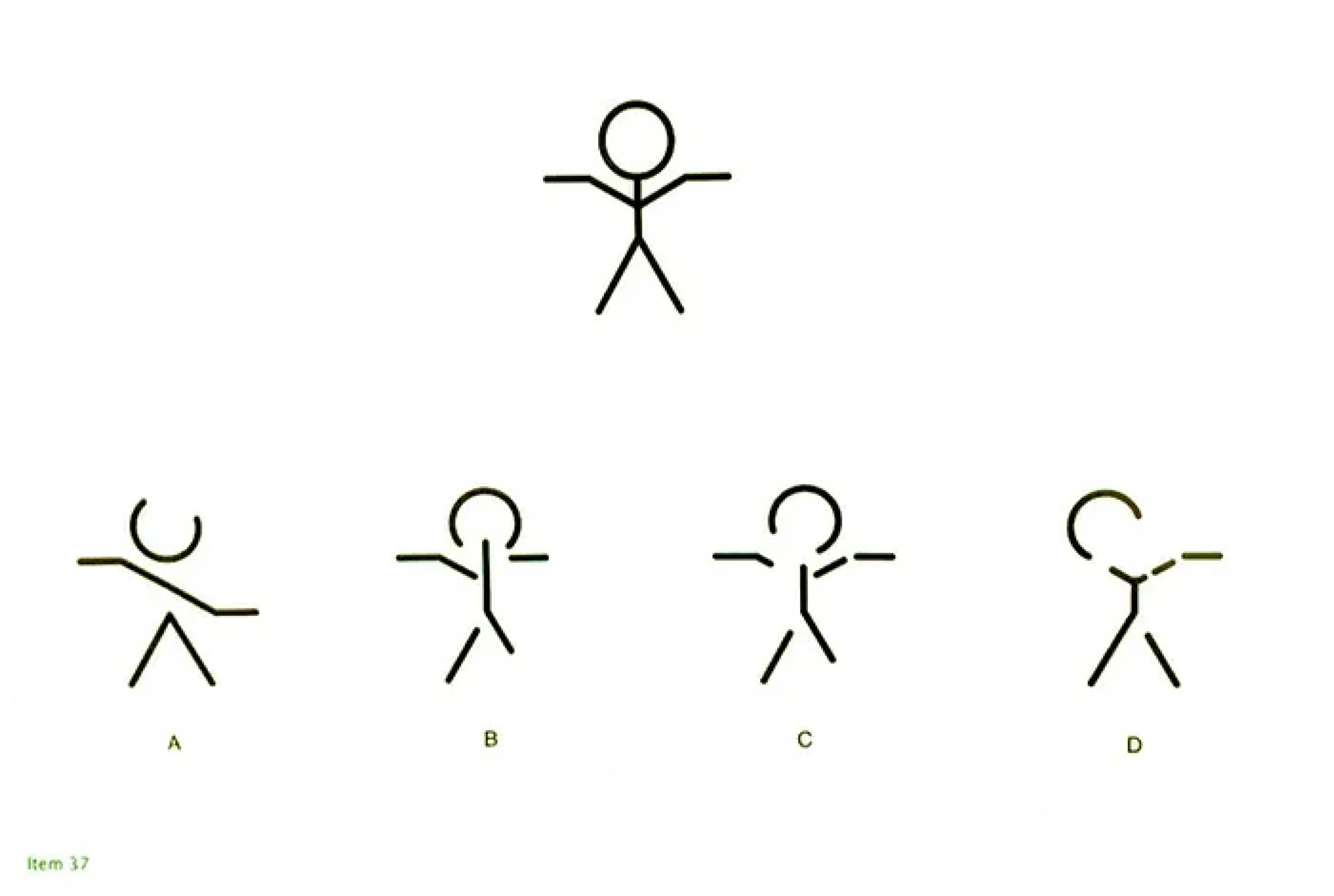 “Well, since B is slightly askew and C has diagonal lines pointing on a 45 degree angle and the half circle on D is further to the right, and well, mumbly mumbly, and if you were to reverse the triangle, mumbly mumbly, of rotate this part, well then, it’s OBVIOUSLY A,” says the man with renewed confidence..